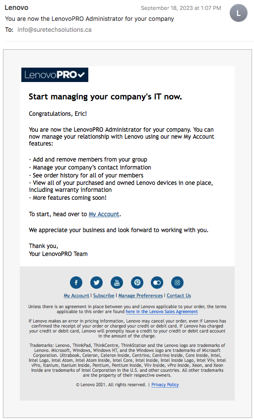 Suretech Solutions Ltd. is an independent Canadian IT solutions provider and proud member of Lenovo Pro, delivering brand-new, genuine Lenovo business hardware and software to organizations of all sizes.